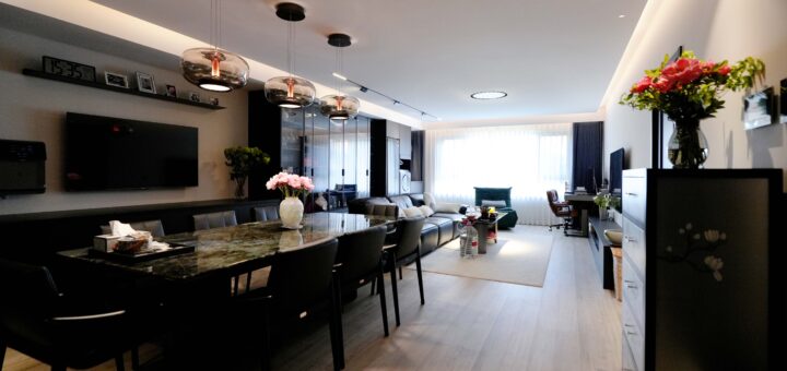 这套现代轻奢风住宅案例,套内面积129㎡,以沉稳静谧的深色系为主基调,在经典中彰显高级质感。